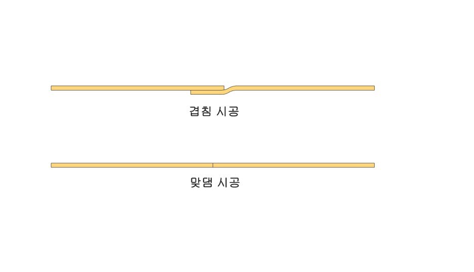먼저 정리를 해드리자면 겹침시공과 맞댐시공은 벽지끼리 이어 붙이는 시공방법에 관한 것이구요